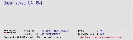 Пользовательское описание отсутствует. Если Вы являетесь владельцем данного сервера, Вы можете получить доступ к статистике и редактированию этого описания. Для этого перейдите по ссылке "Это мой сервер", расположенной в предыдущей таблице. Если ссылки нет - значит Вы все еще не зарегистрировались на нашем портале или забыли зайти под своим логином.